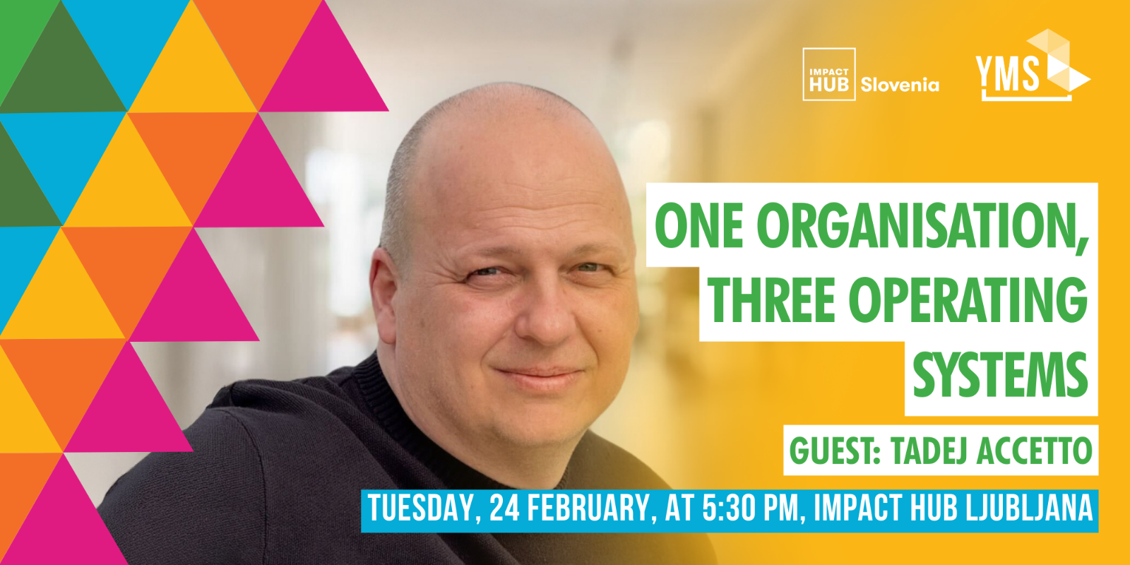 O predavatelju: Tadej Accetto je izkušen agilni coach in organizacijski svetovalec z več kot 20-letnimi izkušnjami. Mentoriral je že več kot tisoč coachev ter pomagal startupom in uveljavljenim podjetjem premostiti vrzel med človeškim potencialom in učinkovito strukturo. Tadej se posveča gradnji visoko zmogljivih ekip, kjer sta namen in kultura dejansko na prvem mestu.